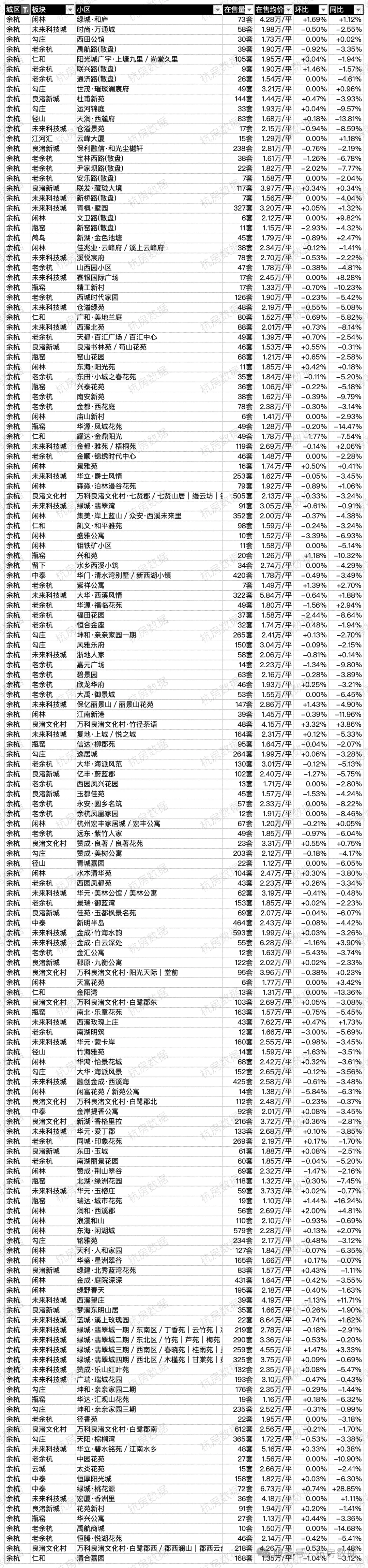 余杭区各小区在售数据
