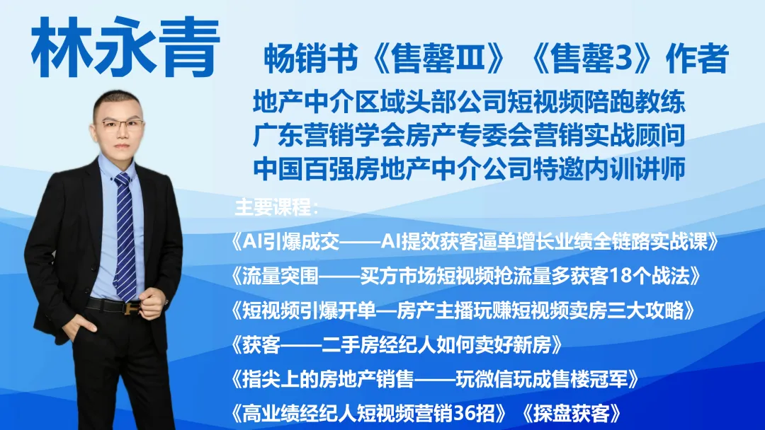 70%的房产销售还在苦等线索、艰难逼单,但已经有10%的先行者用“AI+短视频”实现了流量与业绩的倍数级增长!平台规则在变,客户习惯在变,你是选择在焦虑中等待,还是主动出击,用“超级AI销售”的力量引爆房产业绩?立即行动!报名《引爆获客– 房产AI短视频智能创作与精准引流指南》实战课!