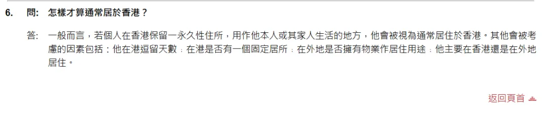 此次政策释义更新,将“永久性住所”这一硬条件置于判定标准的首要位置。税务局明确规定,若个人在香港保留永久性住所,用作本人或其家人生活的地方,便会被视为通常居住于香港。