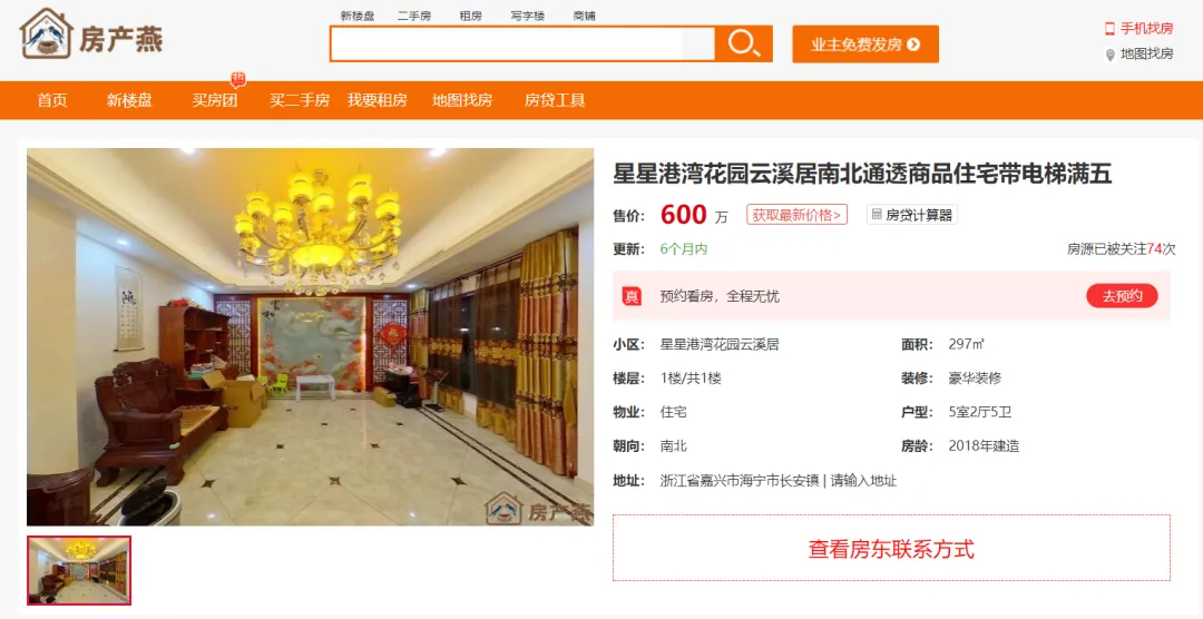 >找房子→房产燕丨星星港湾花园云溪居 1600万 297平米 星星港湾花园云溪居南北通透商品住宅带电梯满五