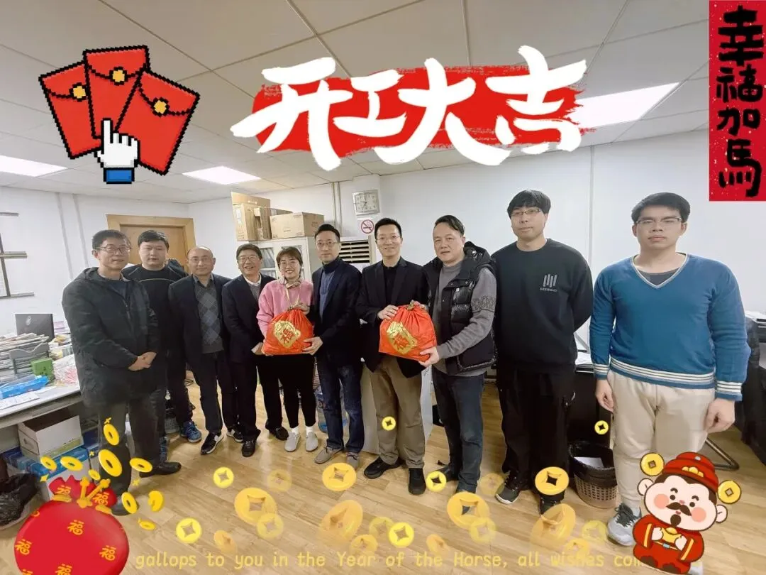 “新年好!”“给大家拜年啦!”“开工大吉!”伴随着一声声温暖的话语,领导们与干部职工互致祝福、亲切交流,并为各部门送上新年福袋,寓意新的一年红红火火,马到福来。