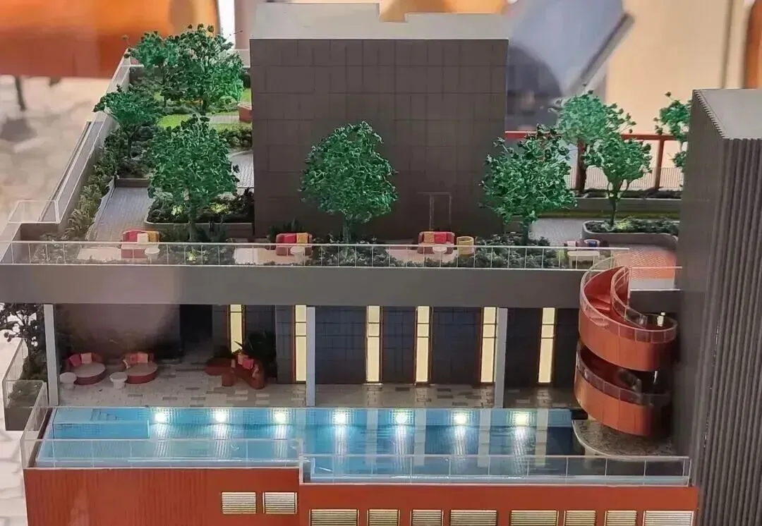 住宅配置稀有复式户型,层高达4.8米,屋顶设施齐全,包括空中酒吧、半奥林匹克泳池和景观健身房,提供五星级酒店般的居住体验。