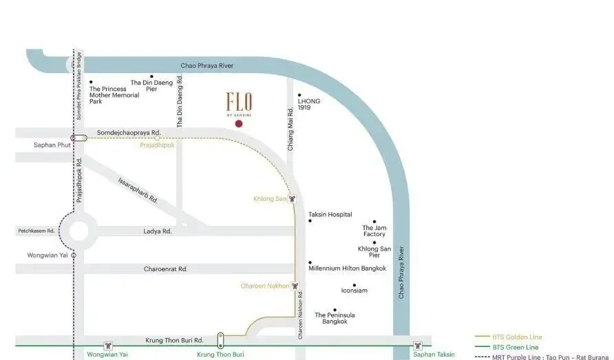 高端河畔与未来潜力:湄南河沿线以其水岸生活方式闻名,区域内有豪华商场、五星级酒店以及即将开放的ICS新翼和曼谷河滨码头夜市二期,极具投资与升值潜力。