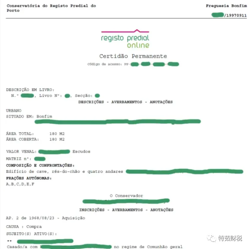 在中国,我们都会有自己的房产权属证明文件,即房产证,那么葡国的房产证明文件是怎样的呢?如下图:
