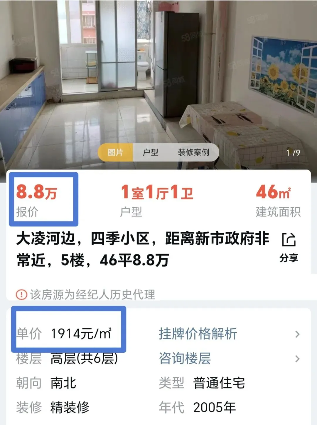 河东某新小区 开盘时挺贵的,现在某二手房交易平台,电梯洋房五千多一平。