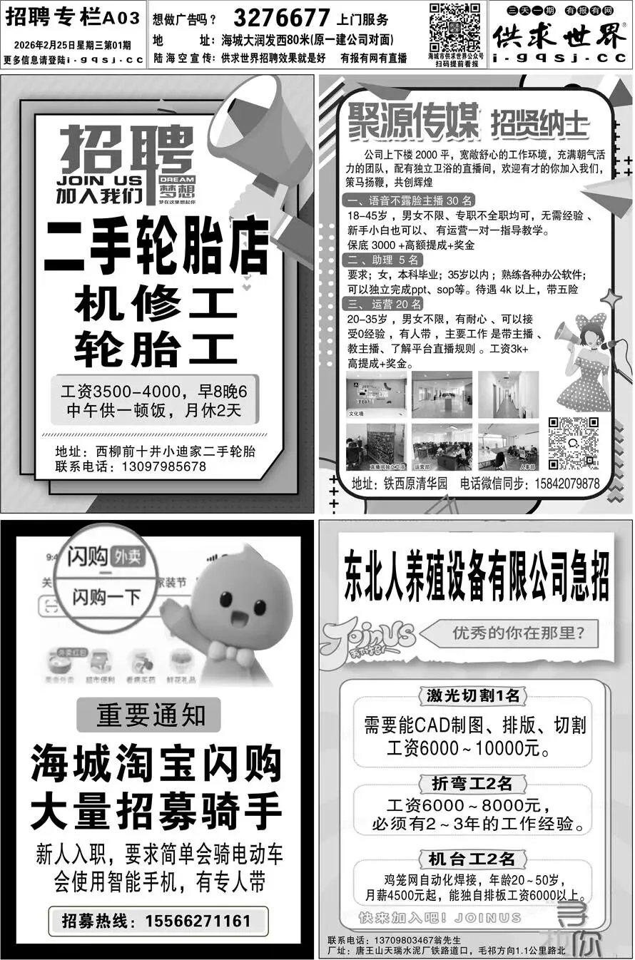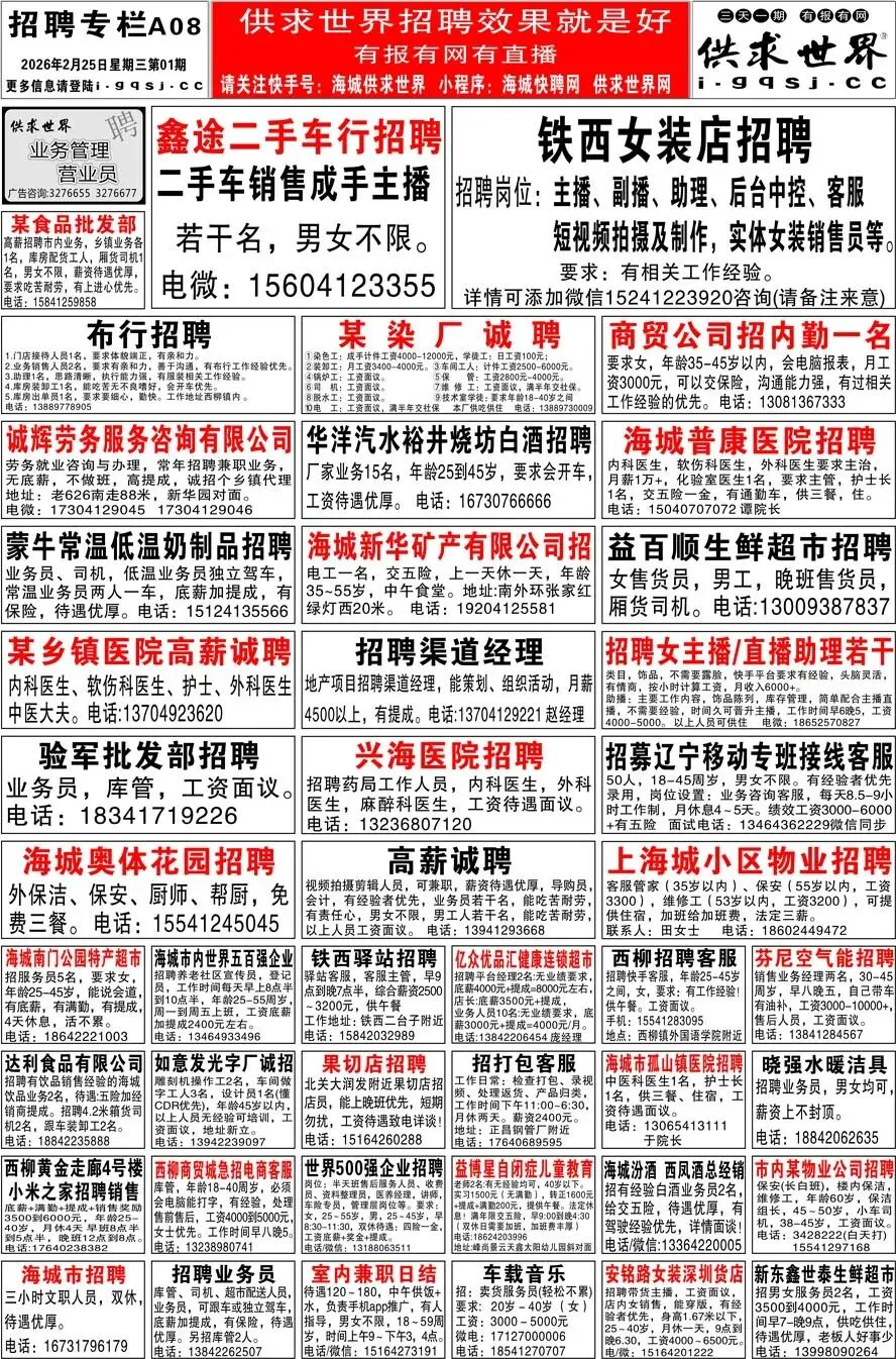 要求年龄 20~35 岁, 男女不限,负责咨询回复教主播,了解直播 ,无需经验 ,工资3k➕高提成➕奖金。