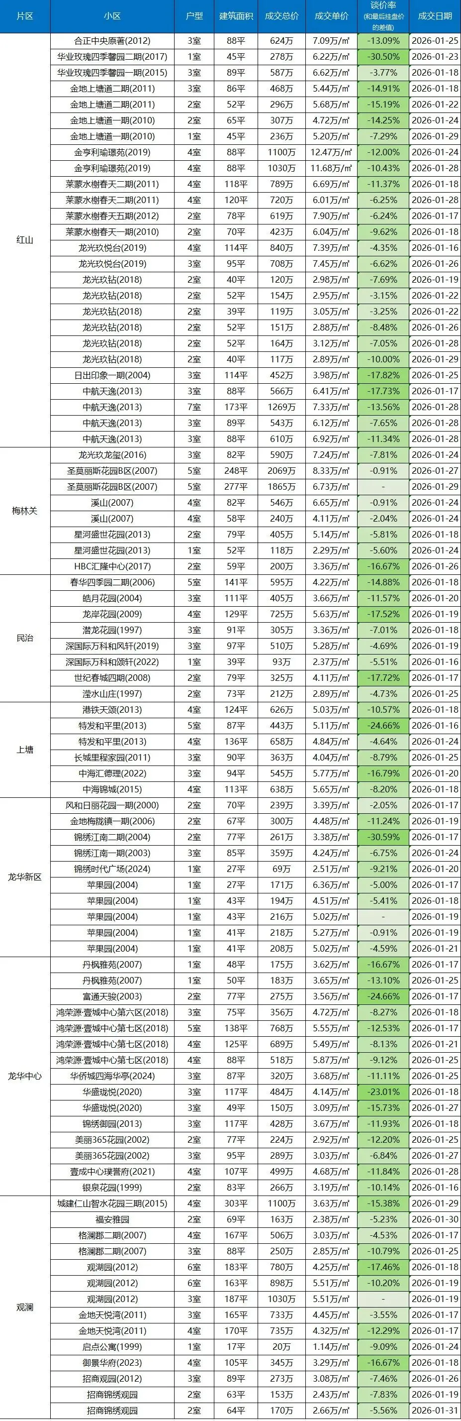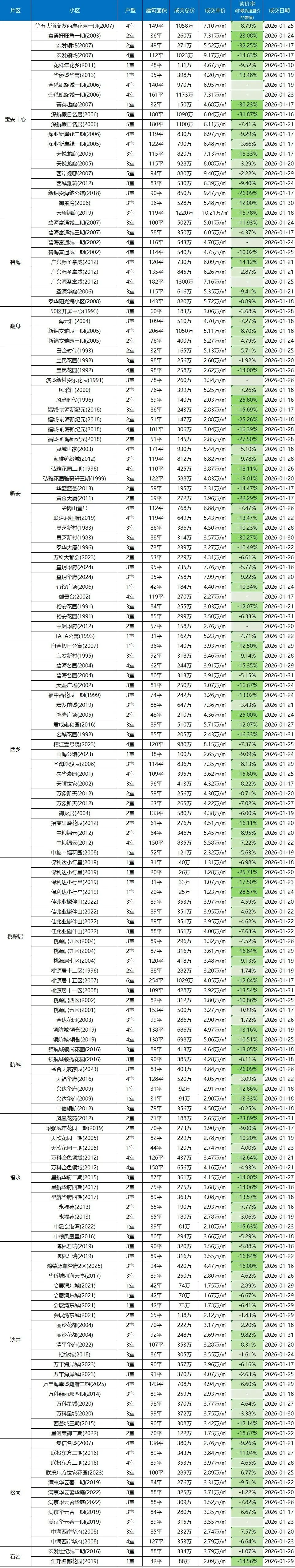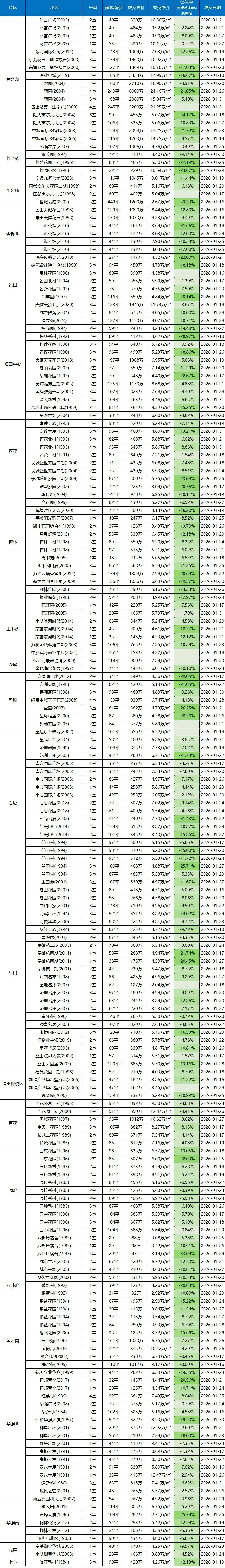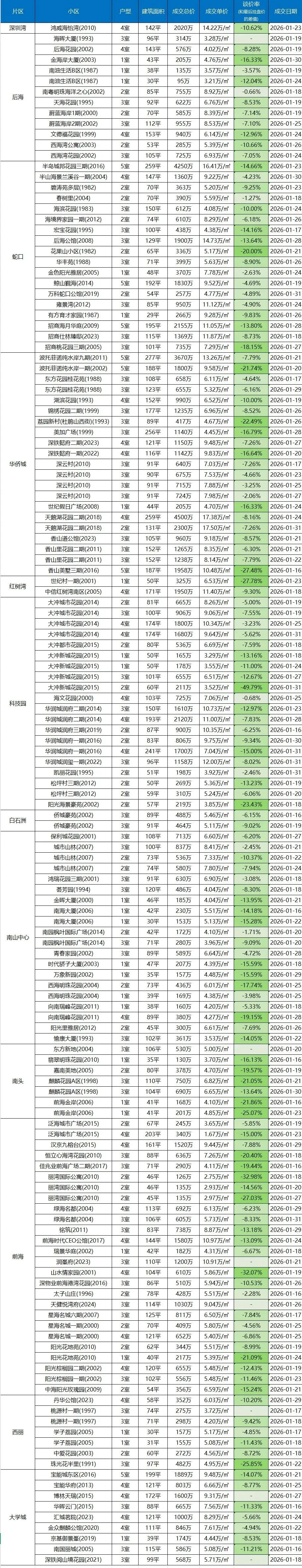 以上为深圳2026年1月下旬各区二手小区的成交数据,如有补充可私信小编