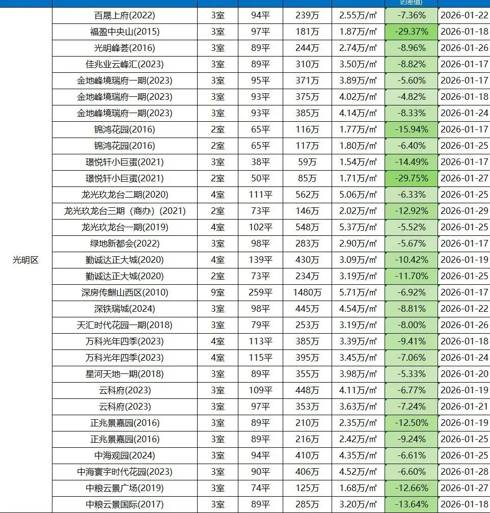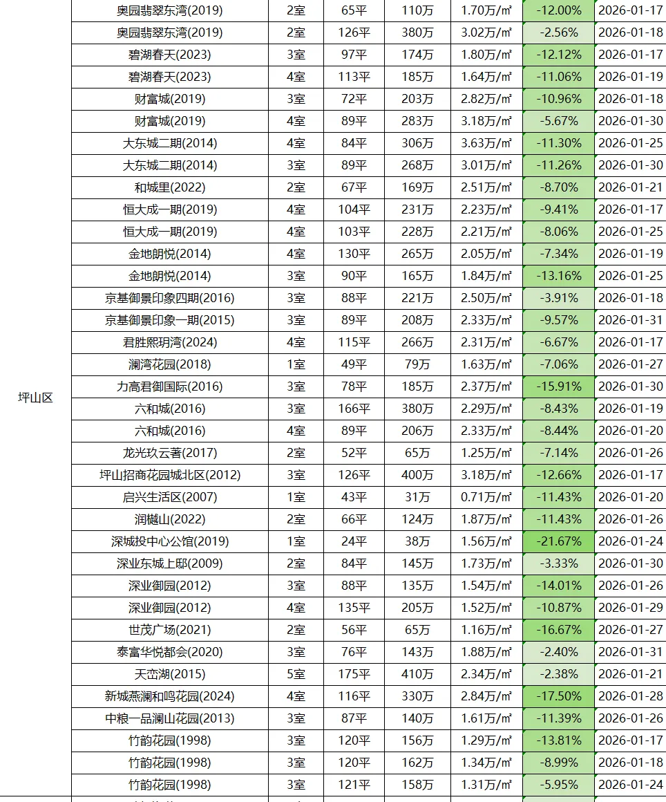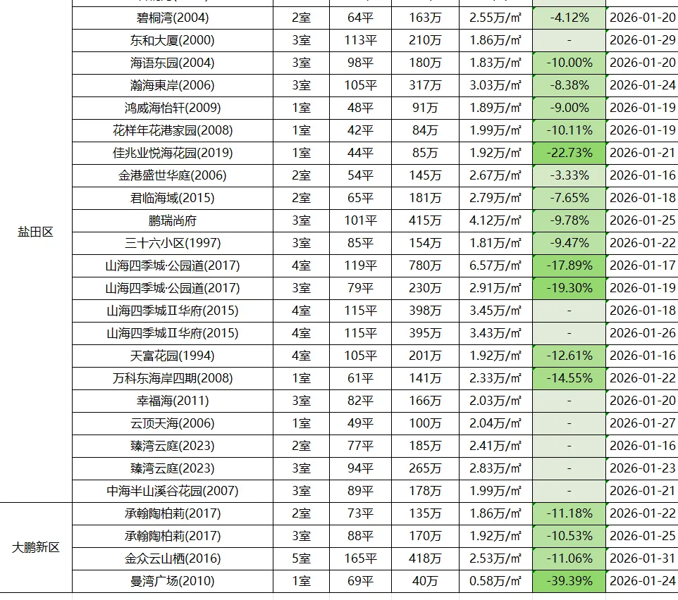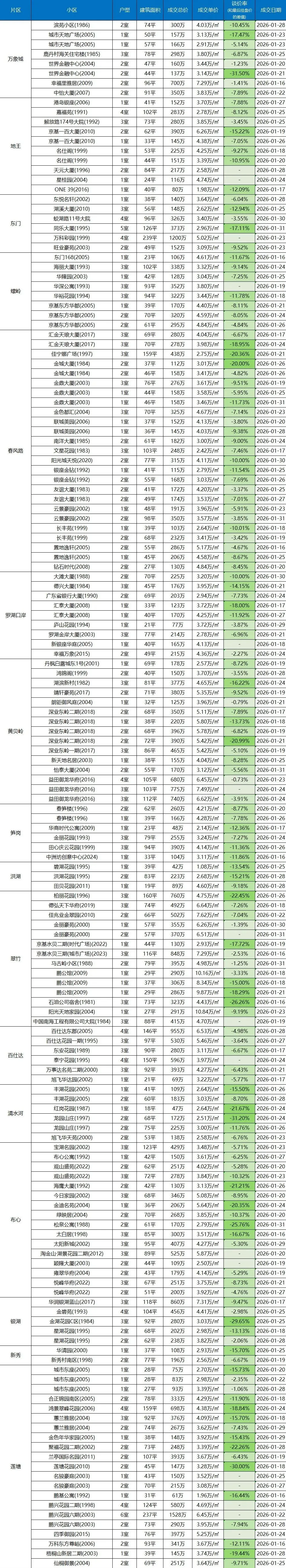 以上为深圳2026年1月下旬各区二手小区的成交数据,如有补充可私信小编
