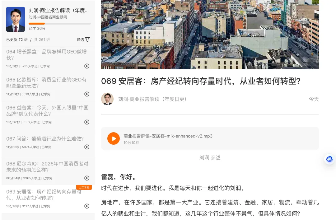 今天在得到看刘润老师的商业报告解读,讲房产经纪这个行业,已经转向了存量时代。