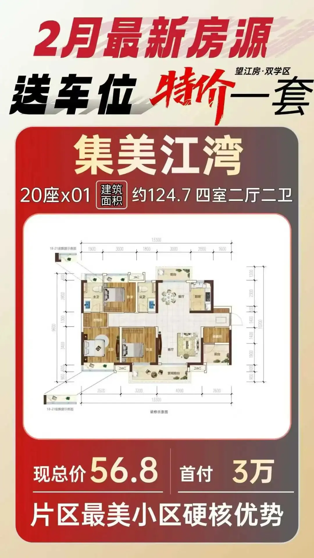 [烟花]集美江湾 新房源 125方 #单价4550