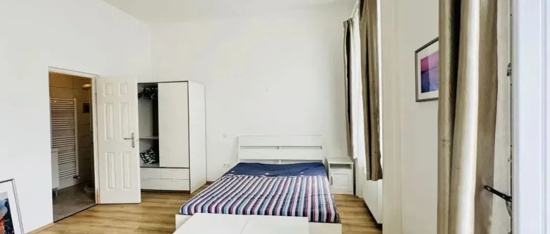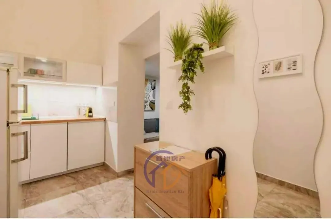 左边套:28平米左右。 一室带阁楼,有厨房、厕所浴室,内高4米,阁楼可站立,精装修,家具家电全新,配备齐全。