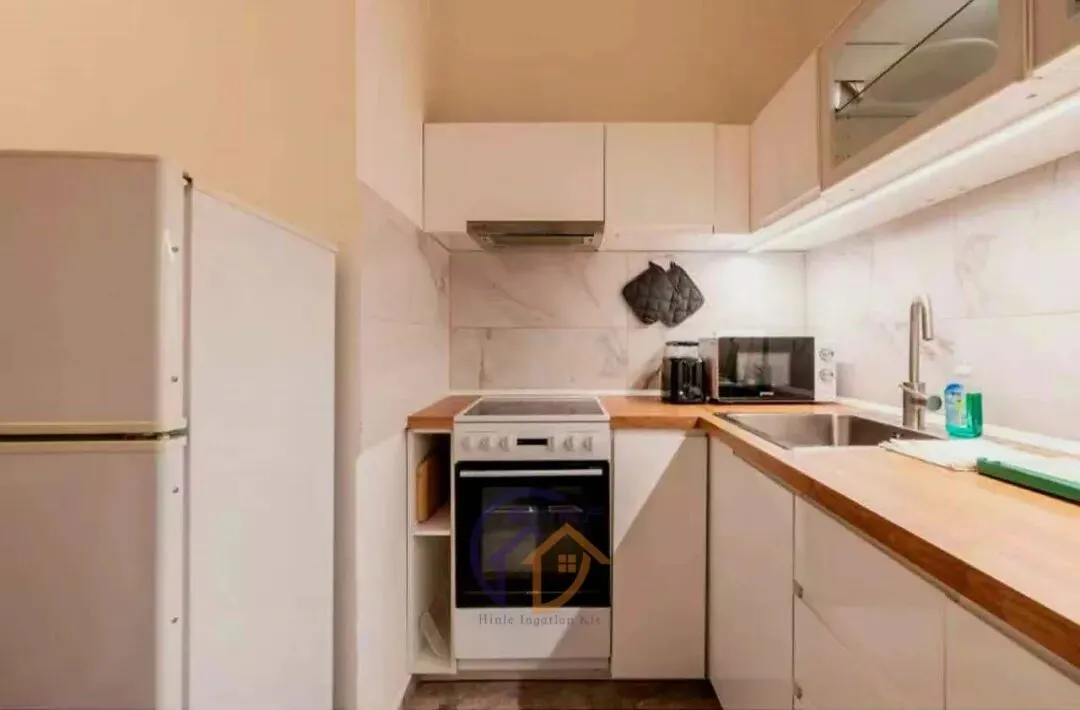 左边套:28平米左右。 一室带阁楼,有厨房、厕所浴室,内高4米,阁楼可站立,精装修,家具家电全新,配备齐全。