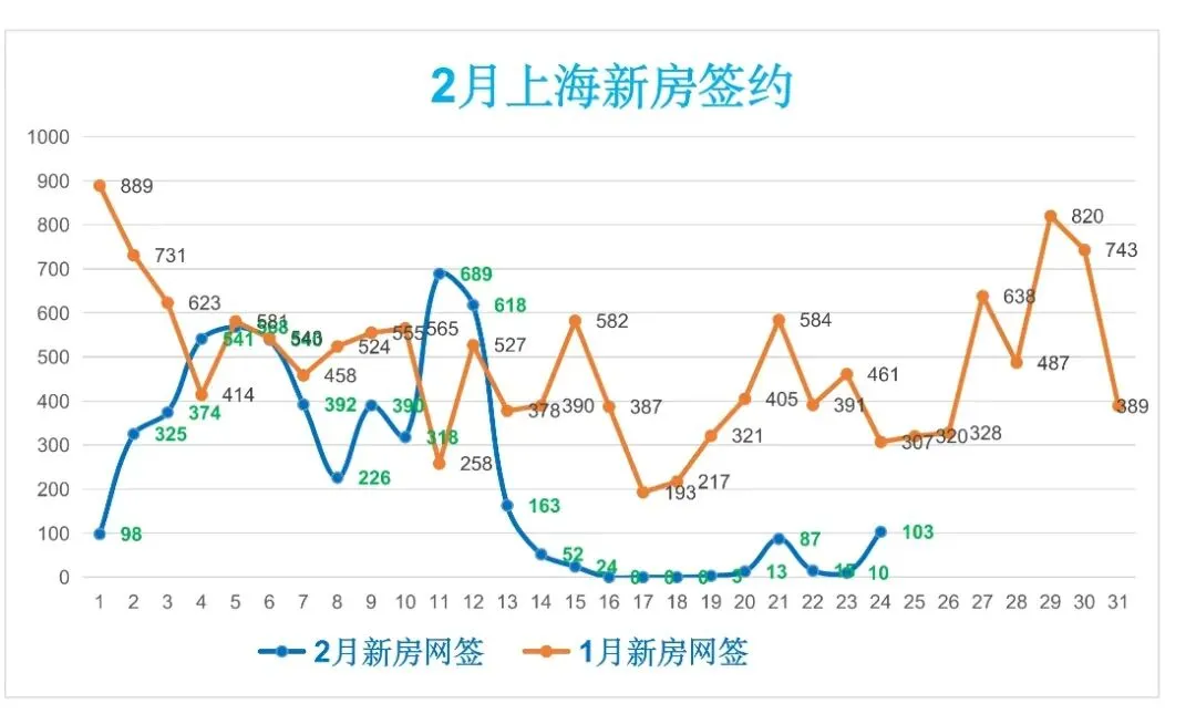 2月22日 周日,上海新房和上海二手房成交量合计25套