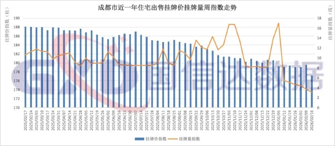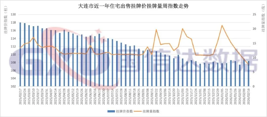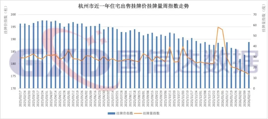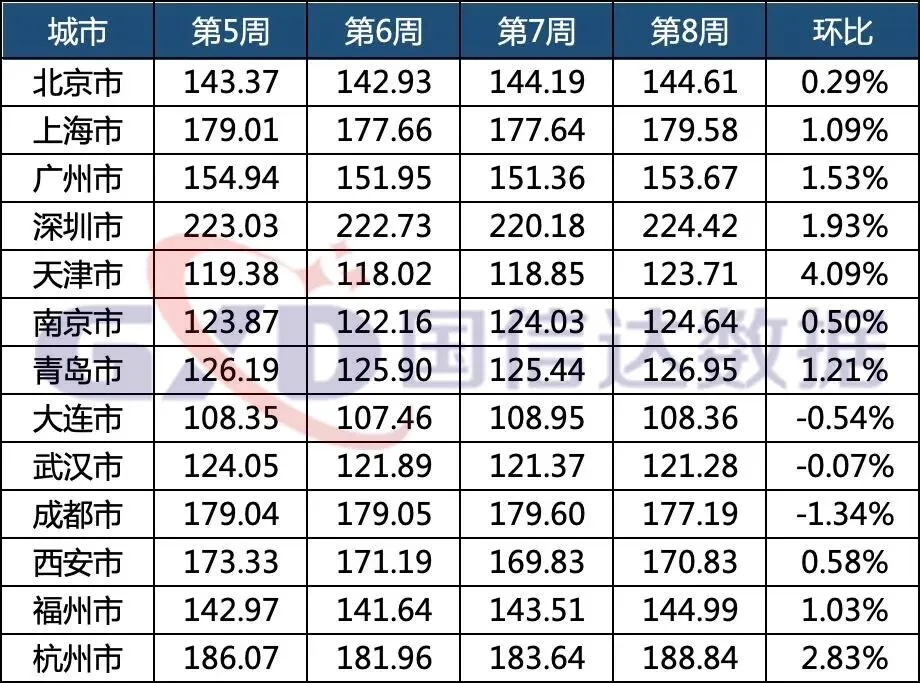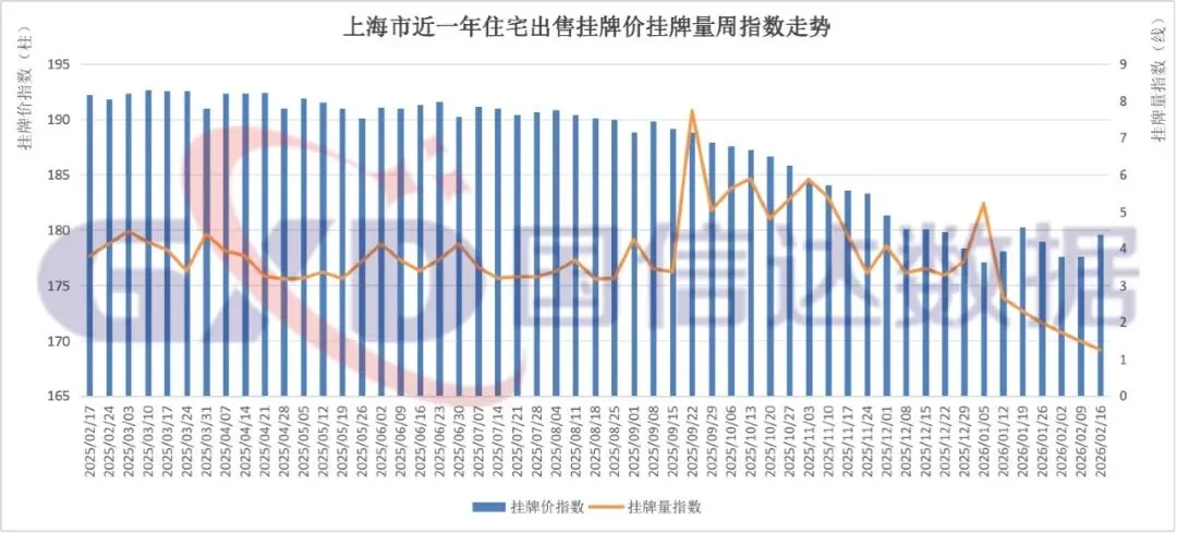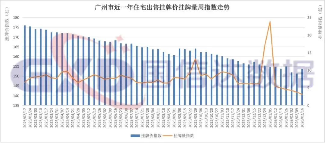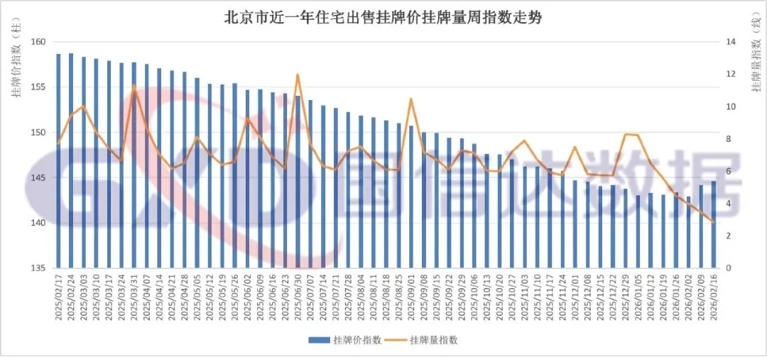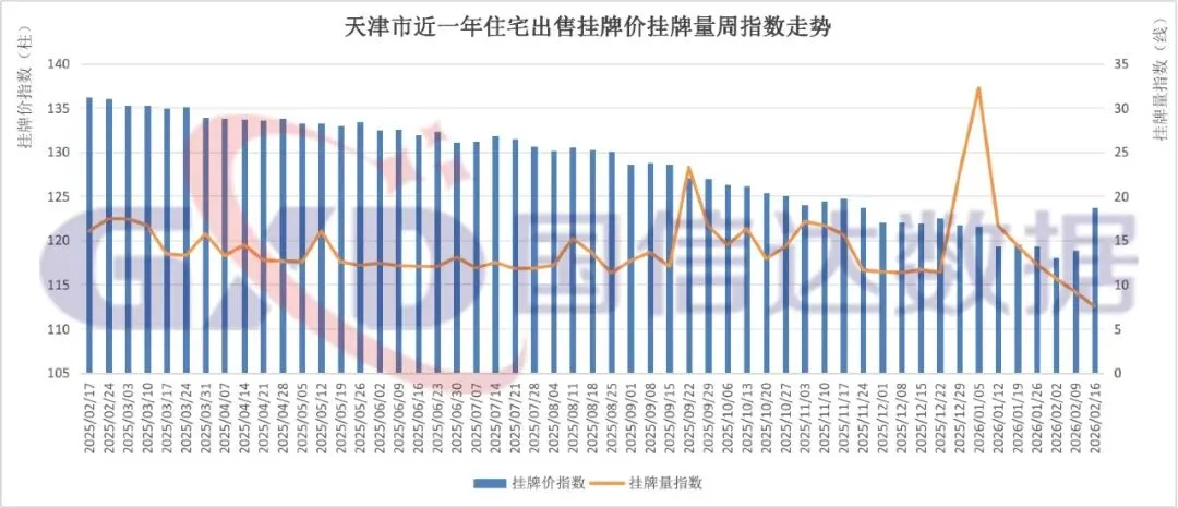 2026年第8周,全国住宅出售挂牌价指数147.21,环比上涨0.22%;挂牌量指数3.73,环比下降1.97%。