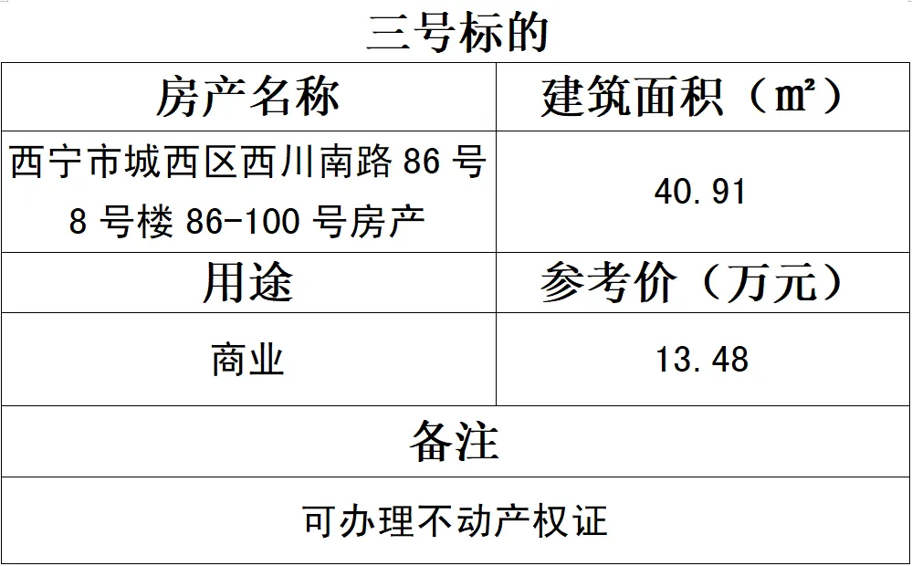 受委托,我公司对位于“西宁市城西区西川南路86号”的三套房产面向社会进行公开招商。