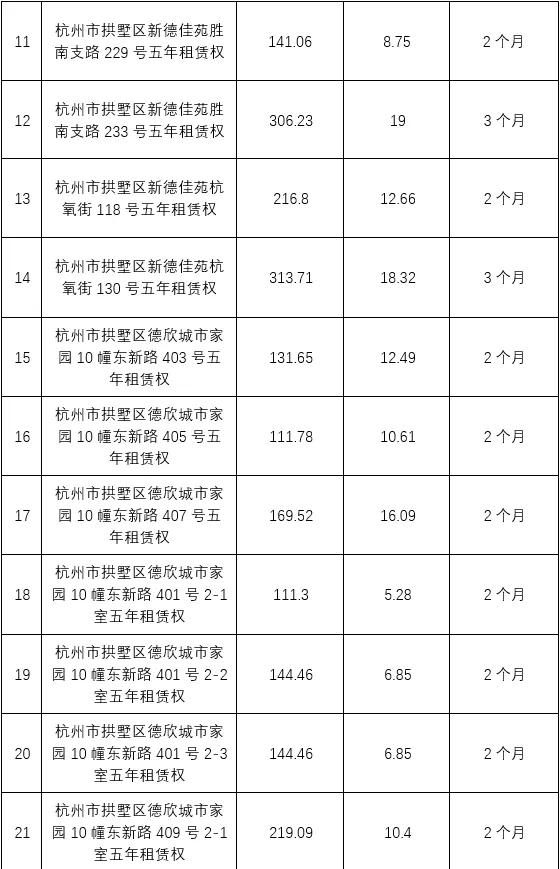 项目名称:杭州拱墅城建资产管理有限公司所持37处房产分零招租