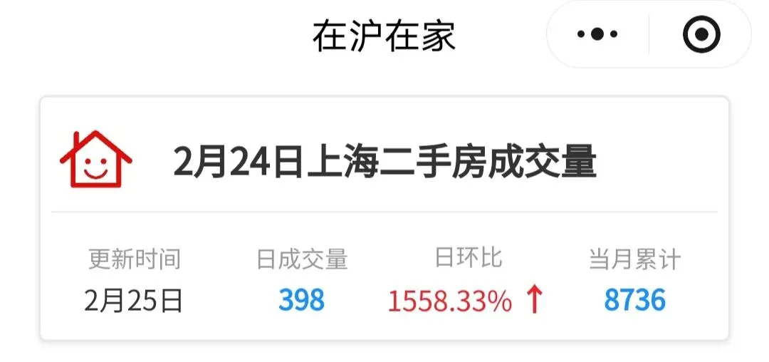 今天是节后第一天数据,大家还没从春节的氛围走出来,预料中没有惊喜。1⃣️昨日上海二手房成交398套,属于三位数正常数据,当月累积成交8736套。