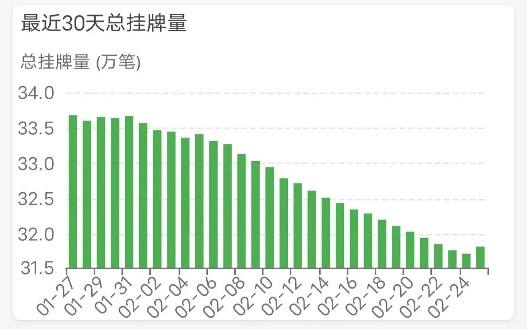 2⃣️挂牌量略微增长📈,结束连续将近半个月下降,目前为318242笔。