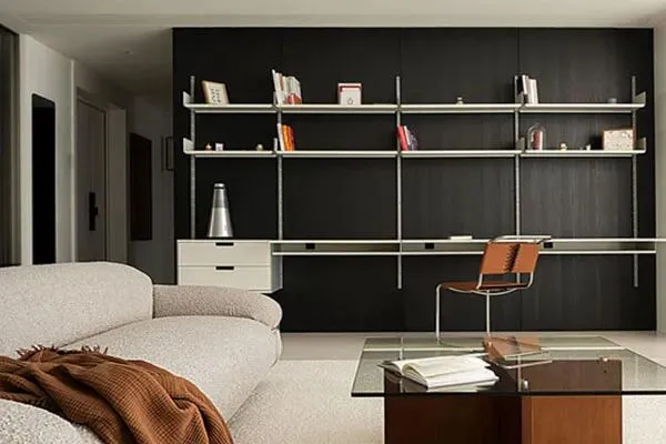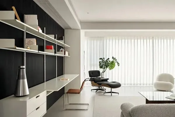 在客厅的一旁,令人高兴的发现了一处读书角落。Felix是一个爱读书的人,设计师Oliver在家空间里,以一面黑色的墙面,和简洁的书架,与一张温厚的书桌,一张现代感的椅子,一同组合出了这个摩登的读书角落。在书架上摆放的是Felix的藏书,在黑与白的映衬下,这个读书角落流淌出了浓郁的人文气息。当Felix在此,翻开一本好书,手边是可口的咖啡,灯光缓缓点亮,让阅读的时光也变得至臻美好起来。这一处角落,它无疑是Felix浓厚书卷气息的注脚了,温雅的人文气韵在此被荡漾开来,这里一定是家的精神高地,将人文雅趣娓娓道来,整个家因为这个素雅的角落,文化的底蕴与高雅的格调也被瞬间提升了。
