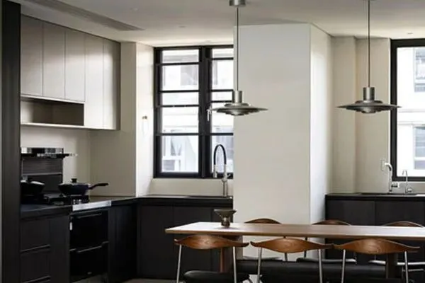 移步到了餐厨空间。设计师Oliver在这个新家里,将厨房与餐厅进行了一体化的设计。在如今这个时代,一顿美食,就能拉近人与人之间的距离了。在黑色与白色的主色调之下,厨房里,黑色的考究橱柜,与精致的灶具,和素净的墙面,勾勒出了一隅便捷舒怡的烹饪空间。而在中心区域,设计师Oliver采用一套经过卓绝的传统手工艺打磨的原木餐桌椅,作为了用餐空间。值得一提的是,这套餐桌椅在经过了高端木漆的使用之后,纹理更加均匀细腻,也泛出了光泽,让用餐更具优雅情调了。在这餐厨一体的空间里,人间烟火缭绕,一半烟火气,一半桃花源,一日三餐之间,是不变的人间情致了。无论你来自何处,你终将囿于厨房与爱了。餐厨空间,它们抒写了家的舒适感,也续写了家的雅致韵味了。