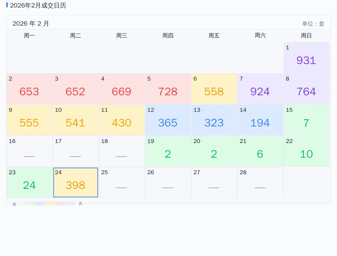 2026年02月成交日历