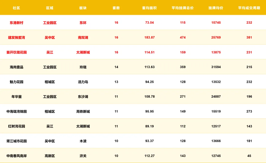 成交套数前十的社区及组团: