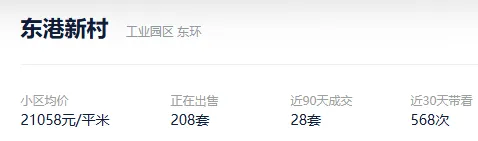 根据贝壳信息显示,东港新村目前208套挂牌出售,挂牌均价21058元/平。