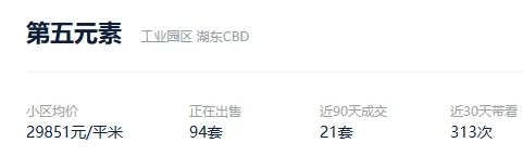 根据贝壳信息显示,第五元素目前94套挂牌出售,挂牌均价29851元/平。