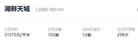 根据贝壳信息显示,湖畔天城目前102套挂牌出售,挂牌均价31575元/平。