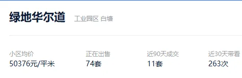 根据贝壳信息显示,绿地华尔道目前74套挂牌出售,挂牌均价50376元/平。