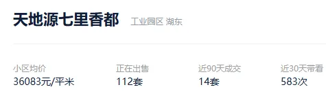 根据贝壳信息显示,天地源七里香都目前112套挂牌出售,挂牌均价36083元/平。