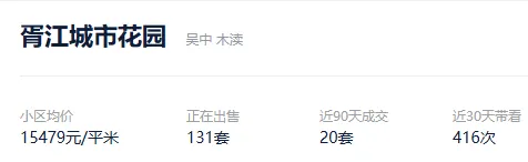 根据贝壳信息显示,胥江城市花园目前131套挂牌出售,挂牌均价15479元/平。