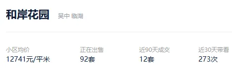 根据贝壳信息显示,和岸花园目前92套挂牌出售,挂牌均价12741元/平。