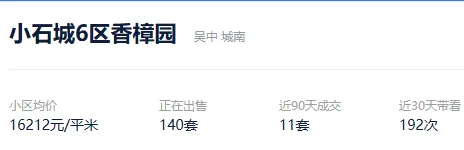 根据贝壳信息显示,小石城6区香樟园目前140套挂牌出售,挂牌均价16212元/平。