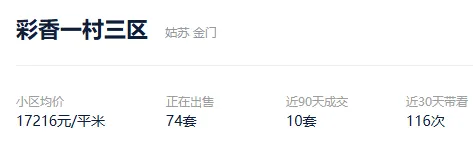 2025年,该社区成交了56套,挂牌均价为22064元/平。