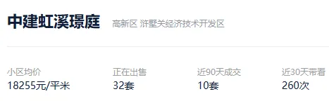 根据贝壳数据显示,今年以来,该社区成交了7套二手住房,套均成交面积139.90平,平均挂牌单套总价260万元,挂牌单价18575/平,平均成交周期251天。
