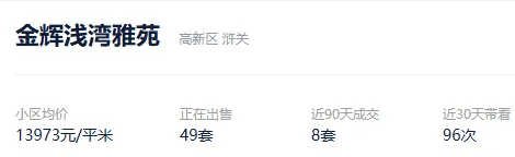 根据贝壳数据显示,今年以来,该社区成交了8套二手住房,套均成交面积124.73平,平均挂牌单套总价346元,挂牌单价27771元/平,平均成交周期424。