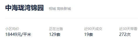 根据贝壳信息显示,中海珑湾锦园目前129套挂牌出售,挂牌均价18449元/平。
