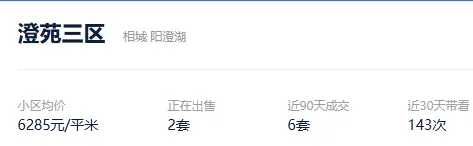 根据贝壳信息显示,澄苑三区目前2套挂牌出售,挂牌均价6285元/平。