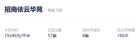 根据贝壳信息显示,招商依云华苑目前57套挂牌出售,挂牌均价19249元/平。