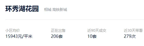 根据贝壳信息显示,环秀湖花园目前206套挂牌出售,挂牌均价15943元/平。