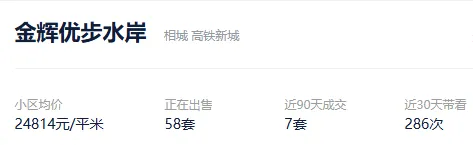 根据贝壳信息显示,金辉优步水岸目前58套挂牌出售,挂牌均价24814元/平。