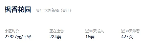 根据贝壳信息显示,枫香花园目前224套挂牌出售,挂牌均价23827元/平。