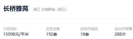 根据贝壳信息显示,长桥雅苑目前192套挂牌出售,挂牌均价15098元/平。