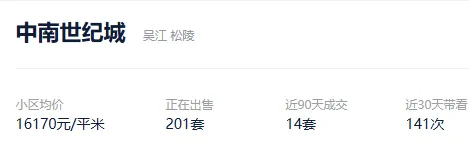 根据贝壳信息显示,中南世纪城目前201套挂牌出售,挂牌均价16170元/平。