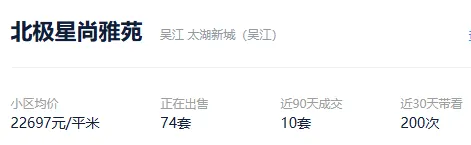 根据贝壳信息显示,北极星尚雅苑目前74套挂牌出售,挂牌均价22697元/平。
