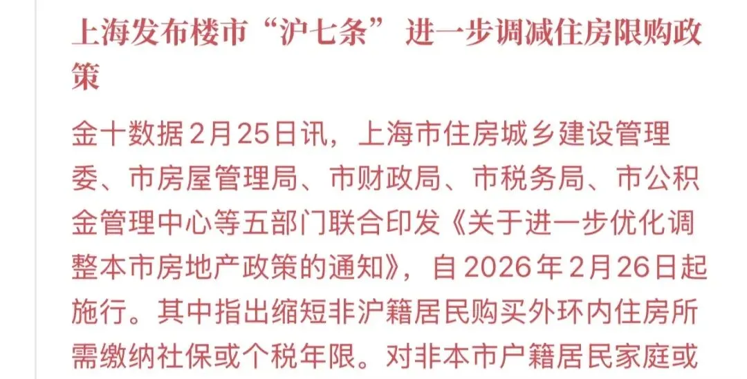 2月底出台新政,恰好赶在传统的"小阳春"窗口之前,意在为3月至4月的成交旺季做铺垫。参照2025年沪六条在8月底发布后成功激活"金九银十"的经验,时间节点的选择本身就是一种市场管理策略。