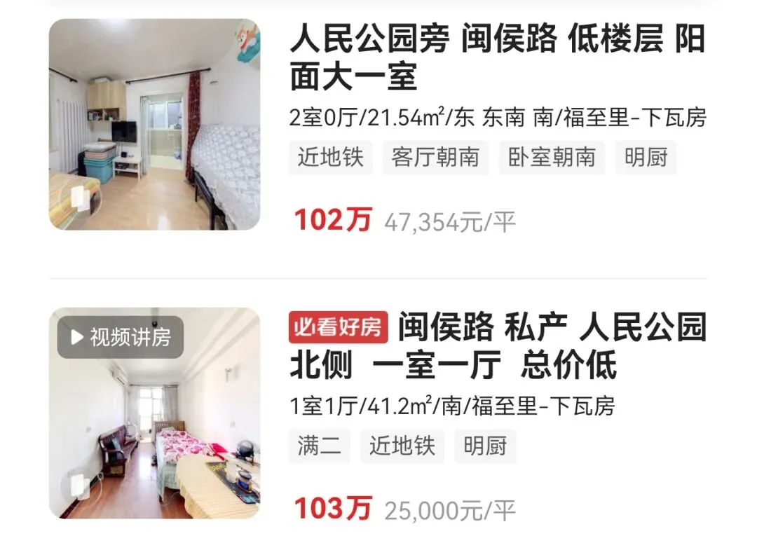 闽侯路小学的一室,同面积段一室挂牌价100万出头。