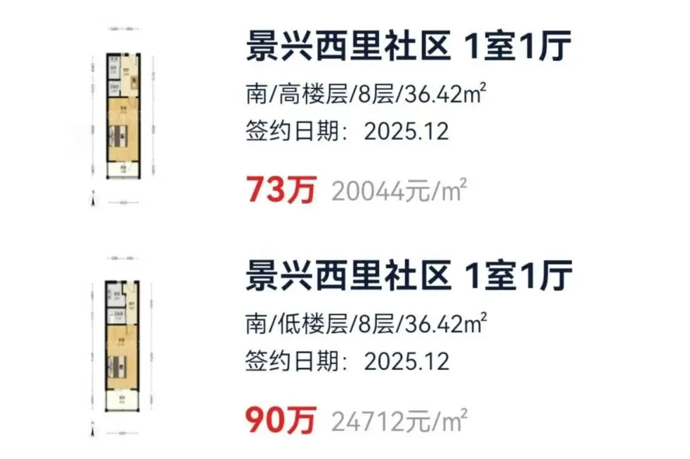 2025年年初,景兴西里一室(30-40平米)的成交价在140万上下。