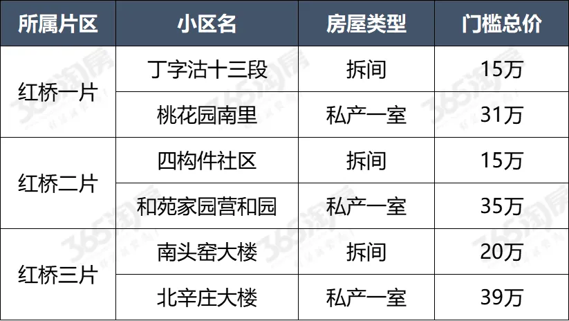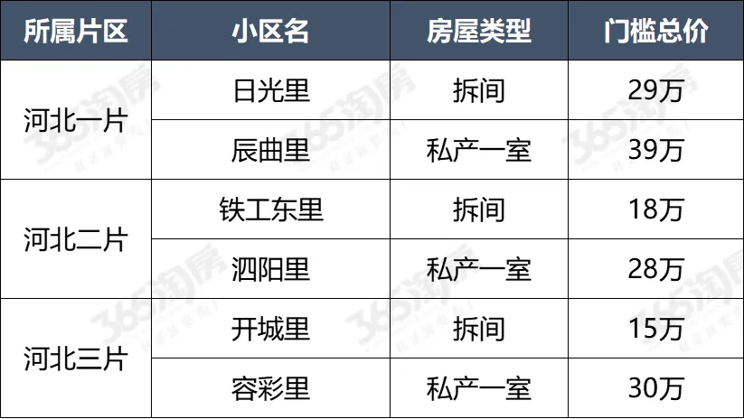 河北、红桥两个区的拆间和私产一室的门槛房源,小编也做了汇总。